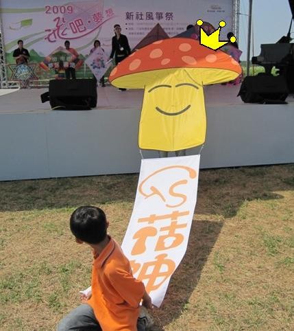 今天是施放風箏讓夢想起飛的日子,新社的店家當然也準備專屬的風箏共襄盛舉,薰衣草森林、菇菇部屋、木佃軒、千樺、橄欖樹、又見一坎煙、菇神、梅林親水岸、天籟園、安妮公主、百菇莊、新社莊園、小路,各店家的風箏一字排開,讓民眾驚豔不已,他們可是精心設計來選美的呢。